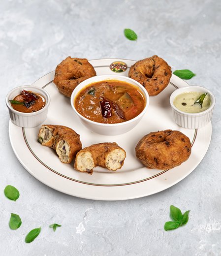 Prepared by soaking and grinding urad dal into a thick batter, the vada is seasoned with black pepper, curry leaves, chopped green chilies, ginger, and onions. Shaped into a doughnut form by hand and deep-fried until golden, Uzhunnu Vada is typically served hot with coconut chutney and sambar.